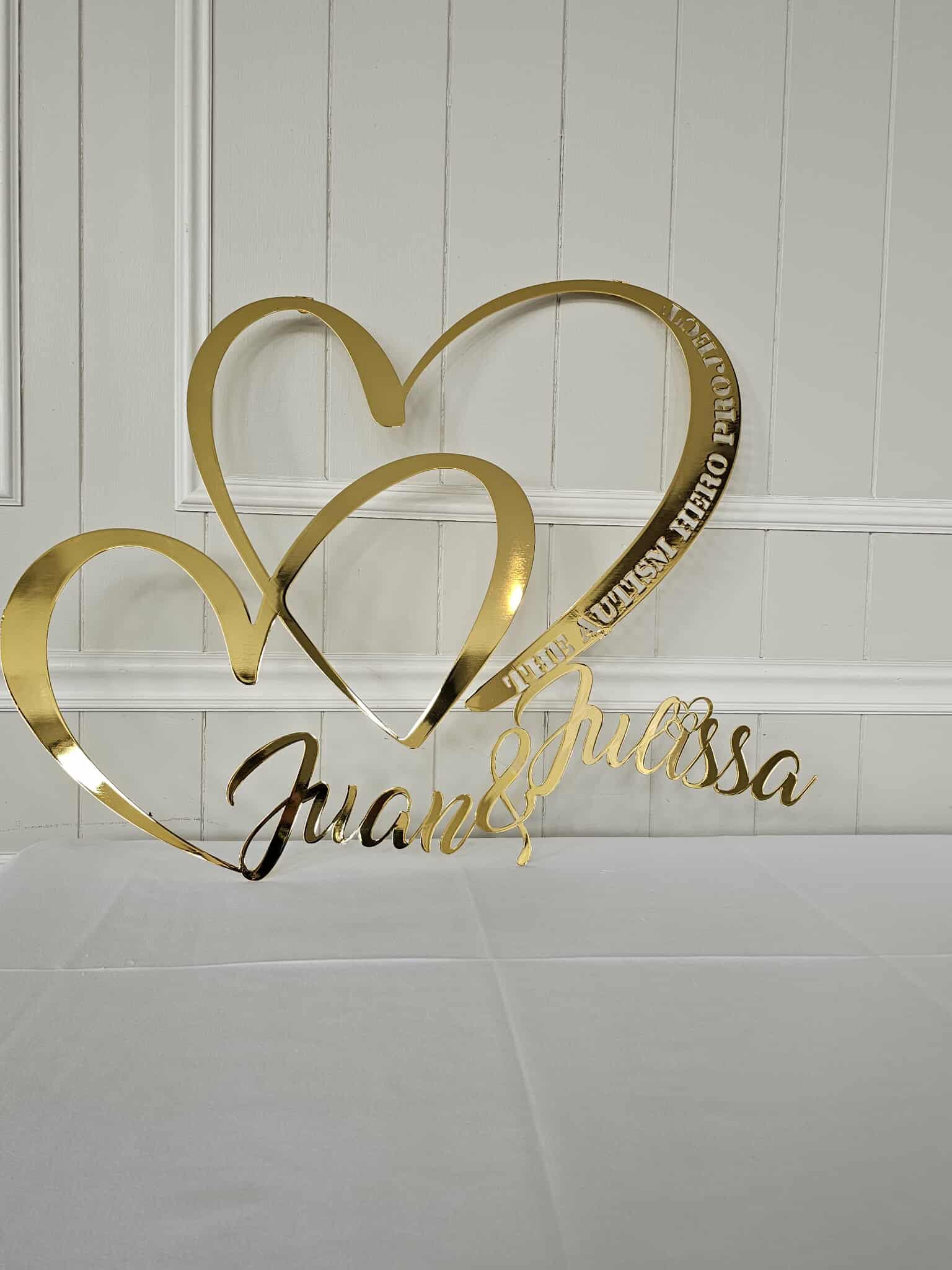 No customs duty fees for U.S. orders. All orders within the United States are shipped from Texas. Orders from all other countries are shipped from Turkey.Custom couple name wall art gold metal design features two elegant intertwined hearts with your names and a special date. This personalized metal decor makes a stunning keepsake for weddings, anniversaries, engagements, or Valentine’s Day.
