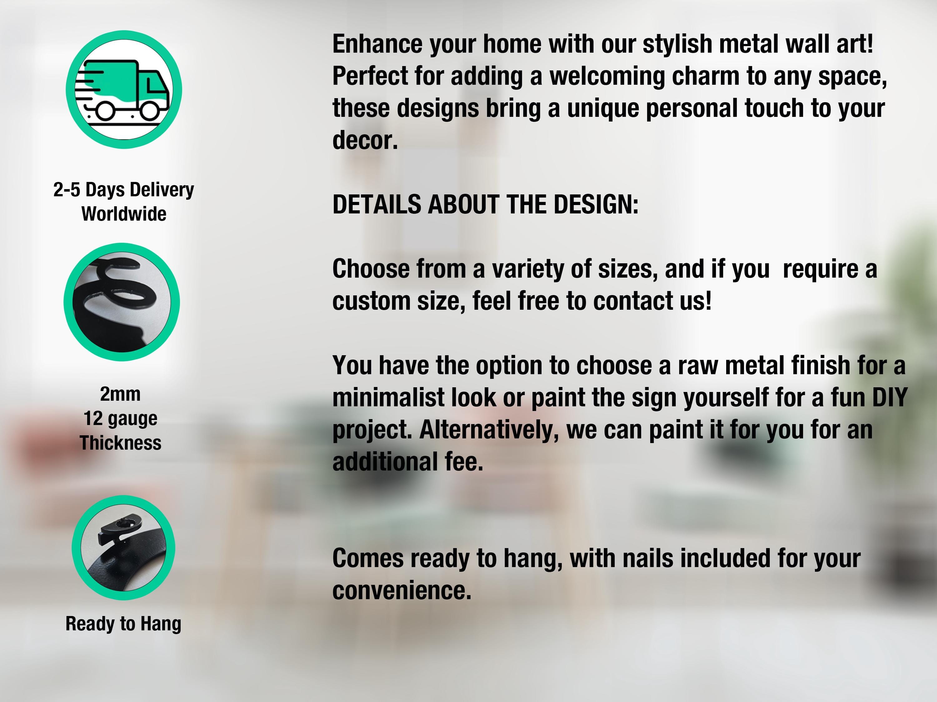• UNIQUE DESIGN: Our metal wall art is perfect for any room in your home or office, including your living room, bedroom, kitchen, office, bar, hotel, and even your bathroom. With a variety of themes to choose from, including flowers, abstract designs, nature, love, address signs, and family names, our metal wall art is the perfect way to personalize your space.
