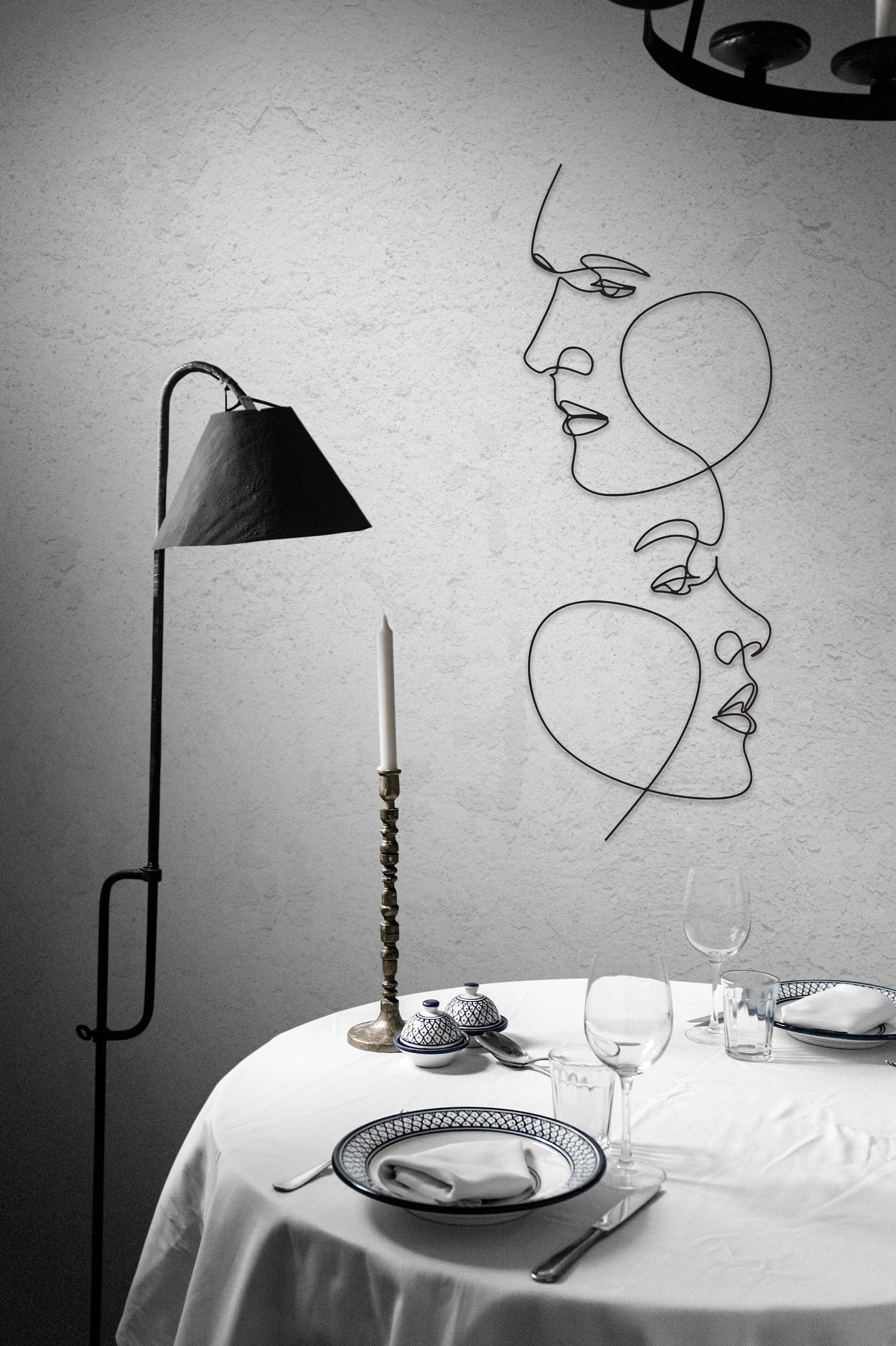 Make a statement with this Abstract Faces Metal Wall Art, featuring minimalist line art of two faces crafted in durable black metal wire. Perfect for modern, contemporary, or Scandinavian interiors, its sleek design adds artistic flair to your living room, office, or bedroom. Lightweight and easy to hang, it creates a unique shadow effect and serves as a conversation piece in any space. This contemporary decor also makes a thoughtful gift for art lovers and newlyweds.