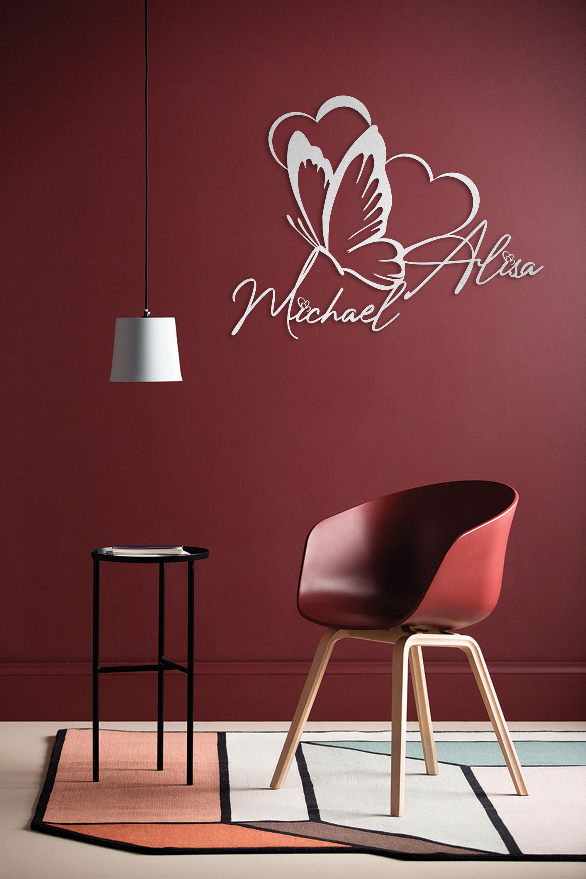 Celebrate love and connection with this Personalized Butterfly Heart Metal Wall Art, featuring custom names for a truly unique touch. The elegant butterfly and heart design, crafted in premium steel, adds a romantic statement to any living room, bedroom, or entryway.