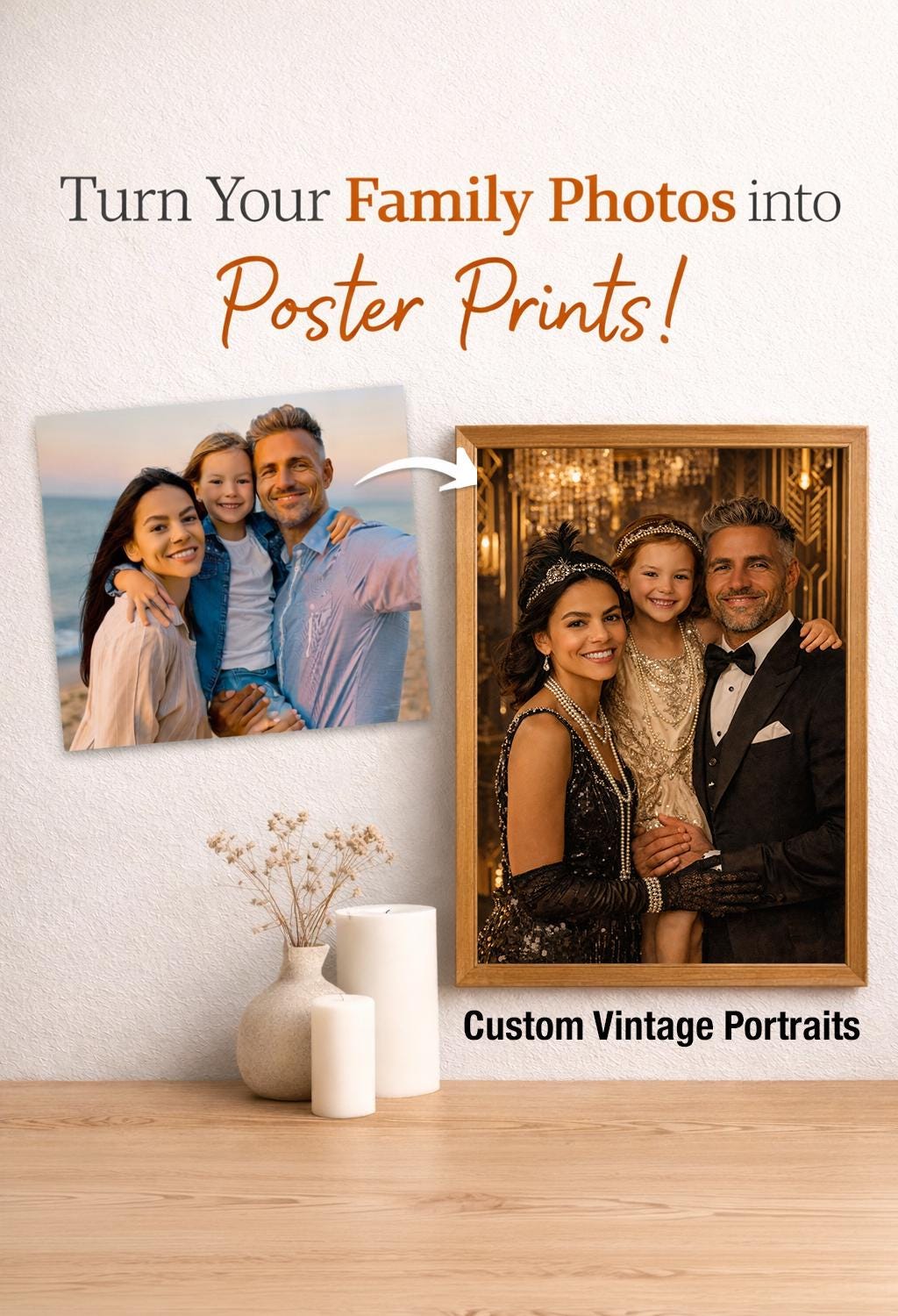 Turn your favorite family photo into a timeless piece of art with our custom vintage portrait service. We transform your image into elegant historical styles, creating a unique and eye-catching artwork that looks like it belongs to another era. This personalized piece is perfect for decorating your living room, bedroom, or office, and makes a meaningful gift for birthdays, anniversaries, weddings, housewarmings, or any special occasion.